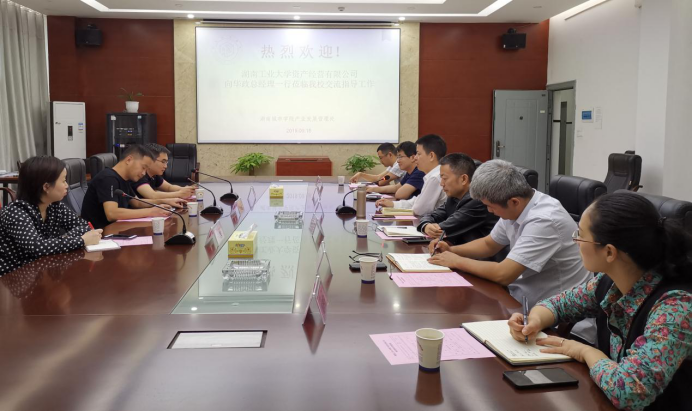 2019年9月18日下午3点半,湖南工业大学资产经营公司总经理向华政一行来永利官网考察交流,我处处长熊创贤、副处长郭太平、资产公司财务总监刘翔等企业负责人陪同。
