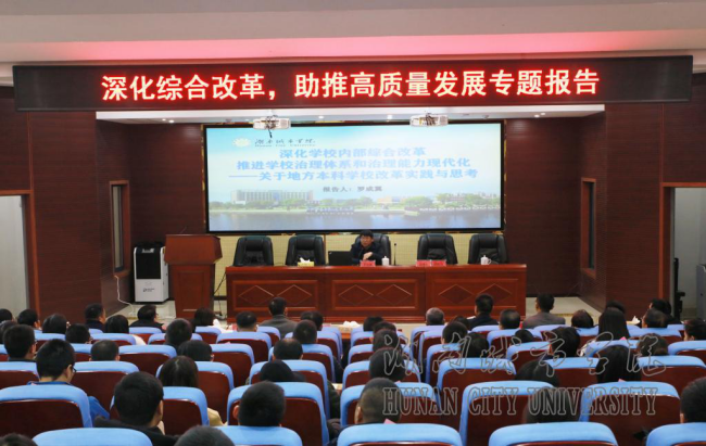 罗成翼详细阐述了2016年以来永利官网推进综合改革的背景、谋划、举措、成效、保障及特点。他指出,学校新班子上任后,以“建什么样的城市学院,如何发展城市学院”为主题,在全校范围内深入开展“转型发展、内涵发展、特色发展” 大讨论活动,形成了“一二三五”发展战略。着力推进“六破六立”综合改革,以大改革推进快发展。人才培养质量明显提高,办学效益明显增强,核心竞争力明显提升,社会反响全面向好。学校构建了班子抓“四力”、干部抓“六(八)条”、党建抓“二三五工程”的从严治党话语体系,把坚持党的领导、加强党的建设贯穿高校改革发展和立德树人的全过程,将党建的“红色势能”转化为发展的“工作动能”。