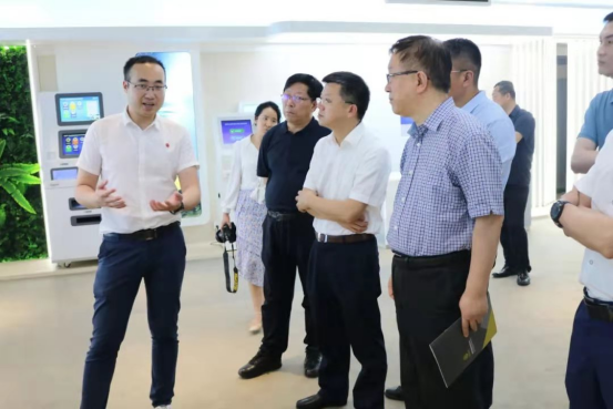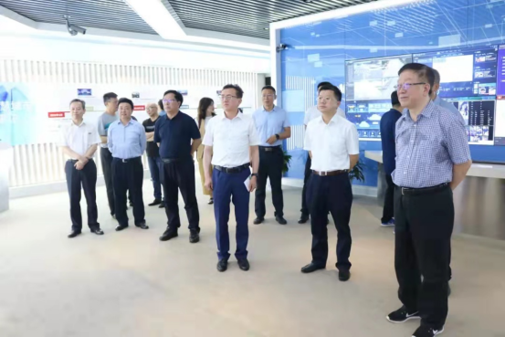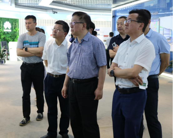 李晓安一行参观我院展厅展示的智慧城市建设成果时亲切询问了智慧住建、智慧农业、智慧医疗等项目的进展及应用情况。
