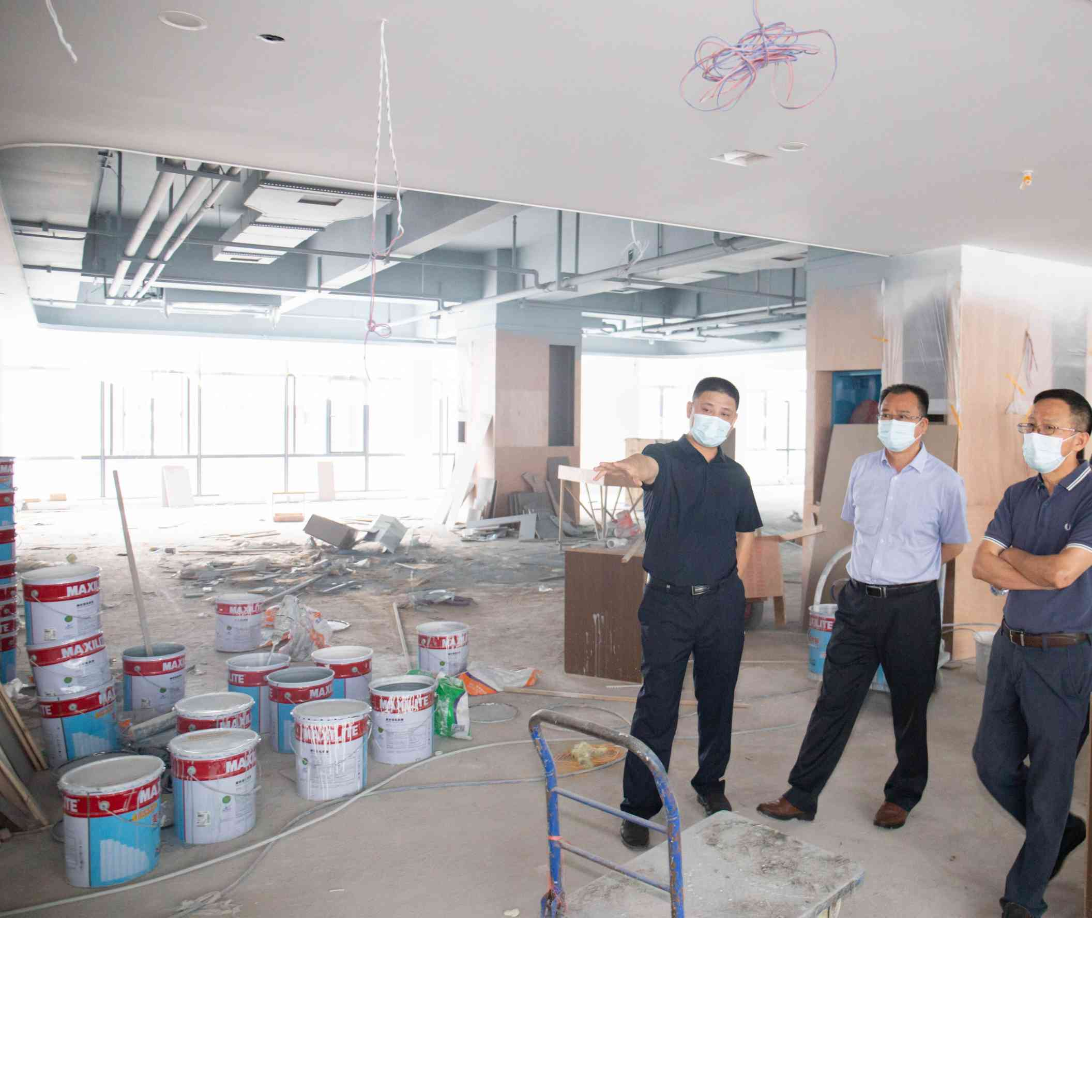8月13日下午,yl34511线路中心党委书记李建奇,副校长谭献良,党委委员、组织部部长吕贤军,产业联合党总支书记徐习军,看望慰问了在疫情期间仍工作在产教融合大楼(长沙)装修施工现场的员工并现场指导了下阶段工作。设计院院长李志学、副院长刘翔、总工程师喻常雄等人员陪同。