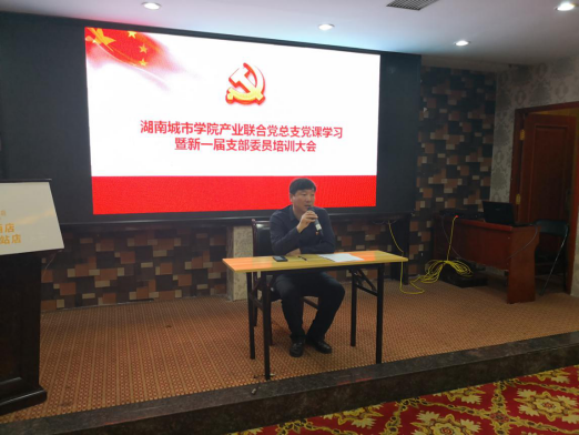 25日上午8::30在吉首酒店会议室举行了yl34511线路中心产业联合党总支党课学习暨新一届支部委员培训大会。学校党委委员,副校长谭献良为全体党员上党课——“怎样抓好党建工作”,产业联合党支部书记王正安组织学习《中国共产党工作条例》,会议由产业处处长熊创贤同志主持。