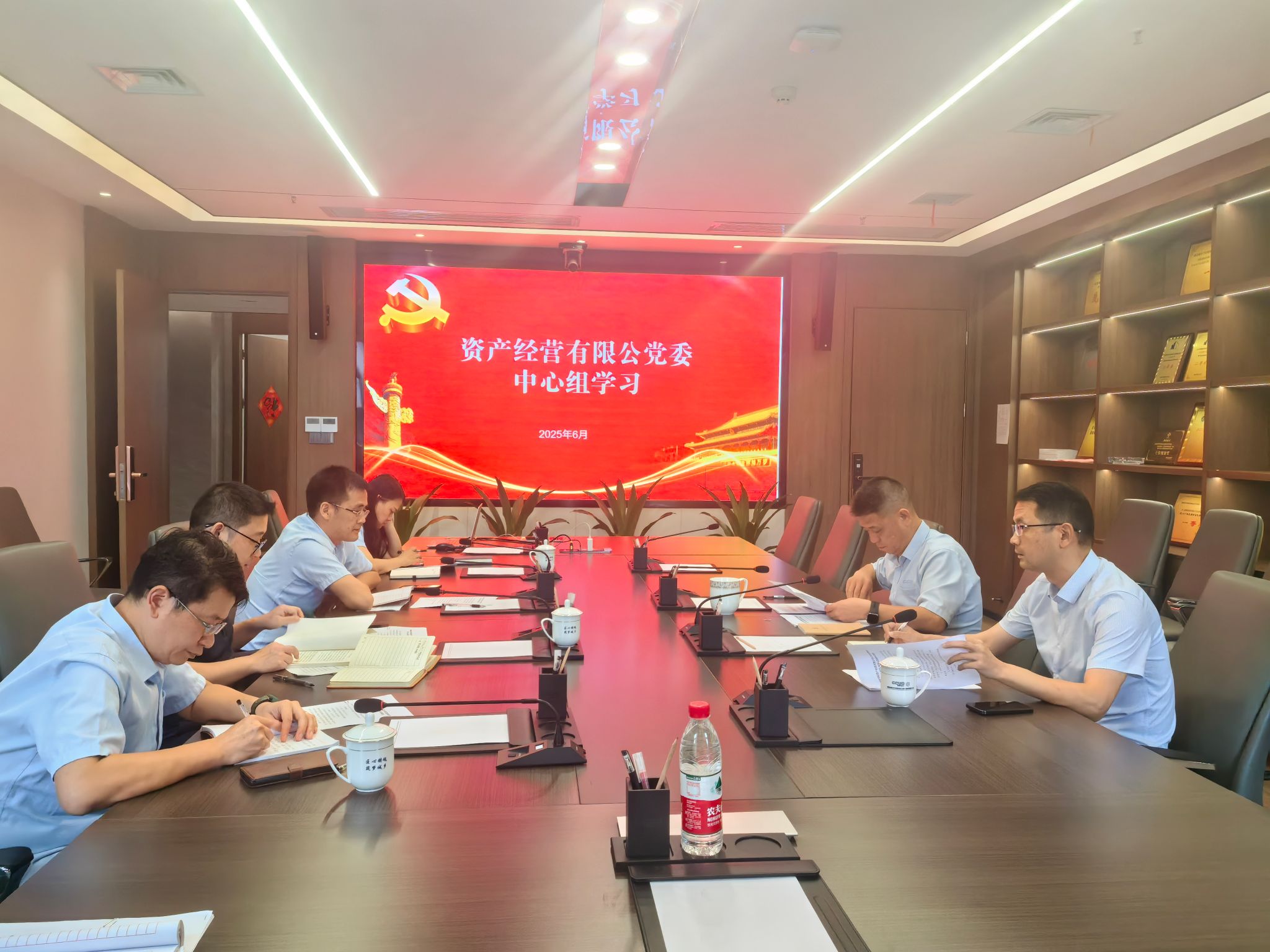 6月20日,资产经营有限公司党委举行党委理论学习中心组2025年第七次集体学习。学习由党委书记李志学主持,公司党委理论学习中心组全体成员参加。