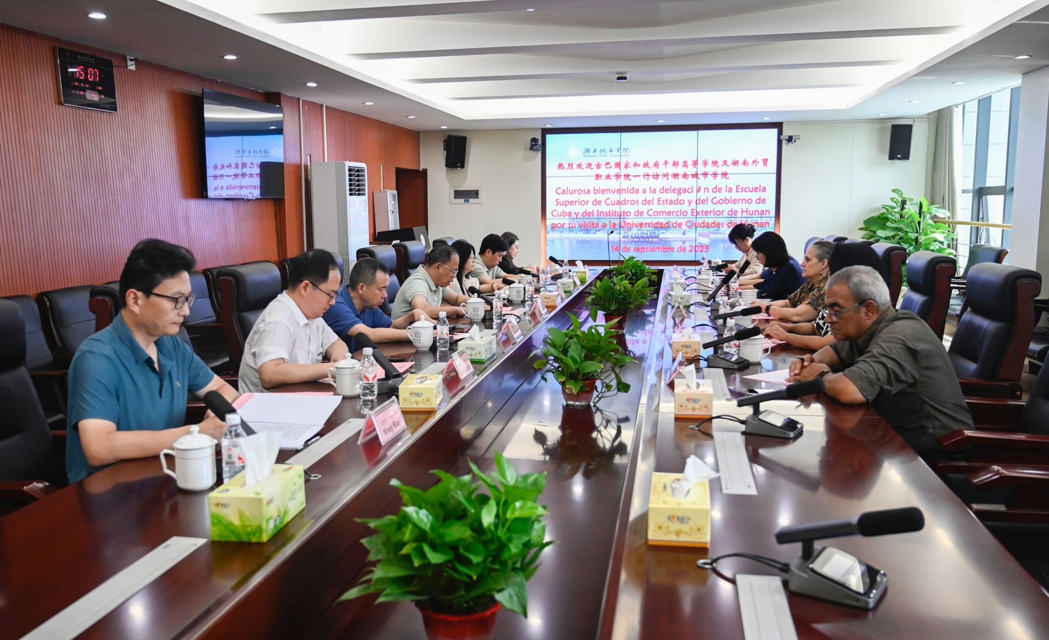 本网讯(通讯员 杜林远)9月14日,古巴国家和政府干部高等学院校长梅赛德斯・德尔加多・费尔南德斯、副校长安娜・格洛丽亚・纳瓦罗・彭顿,湖南外贸职业学院副校长桂诚等代表团一行到访永利官网,旨在深化国际教育交流、拓展合作边界。