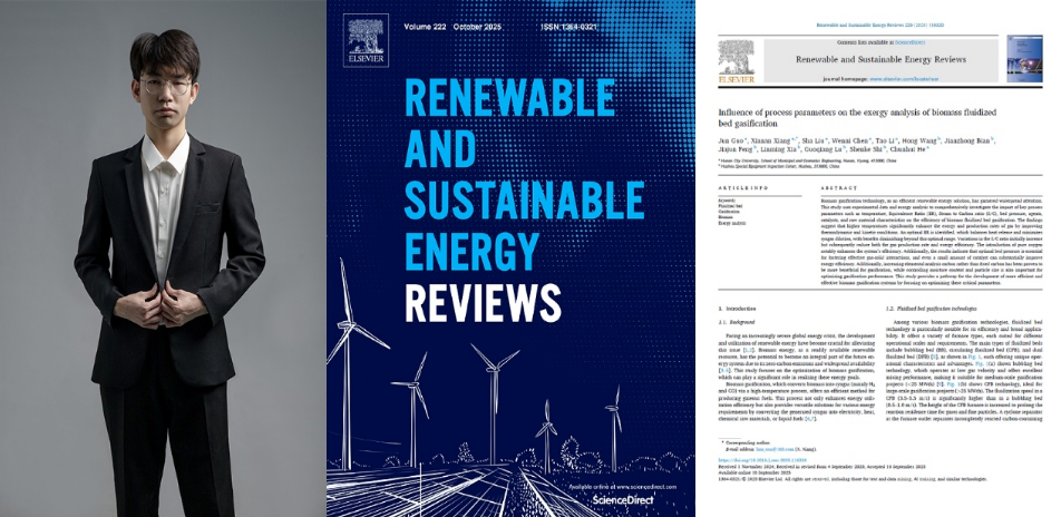 本网讯(通讯员 段姣姣)生物质气化是实现能源结构绿色转型、助力“双碳”目标的关键技术。近日,永利官网市政与测绘工程学院本科生郭俊在该领域取得重要研究进展,为高效生物质能源系统的开发提供了关键的理论指导。该研究成果以《Influence of process parameters on the exergy analysis of biomass fluidized bed gasification》为题,发表于中科院SCI一区顶级期刊《Renewable and Sustainable Energy Reviews》。
