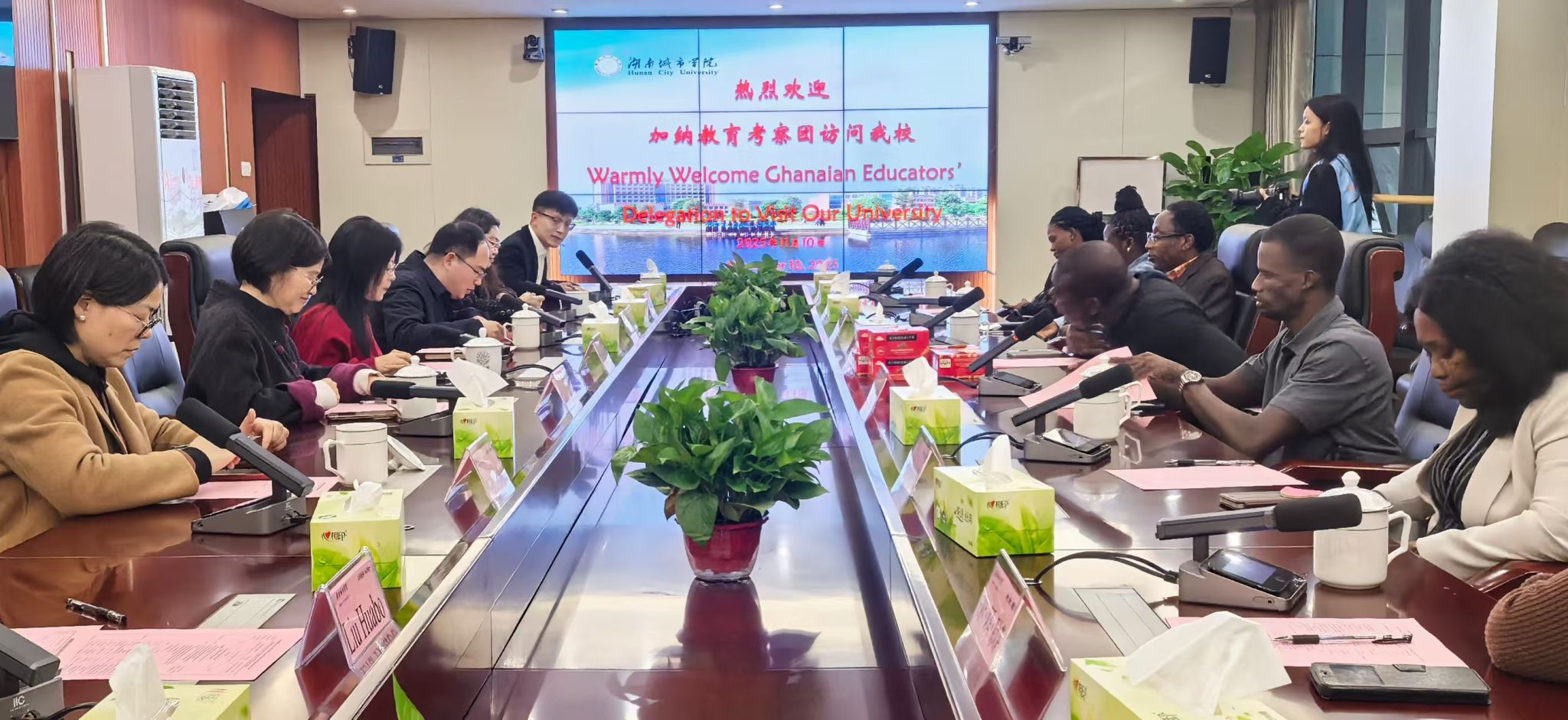 本网讯(通讯员杜林远)11月10日,在永利官网迎来办学55周年之际,加纳教育访华团一行到访永利官网。双方以“汉语桥”活动为纽带,续写中非教育深厚情谊,围绕孔子学院发展、教育文化合作、师生互访交流、城建领域科研协作等核心议题展开深入座谈,共商中非教育合作高质量发展新路径。党委书记何振、副校长徐姝出席座谈会。
