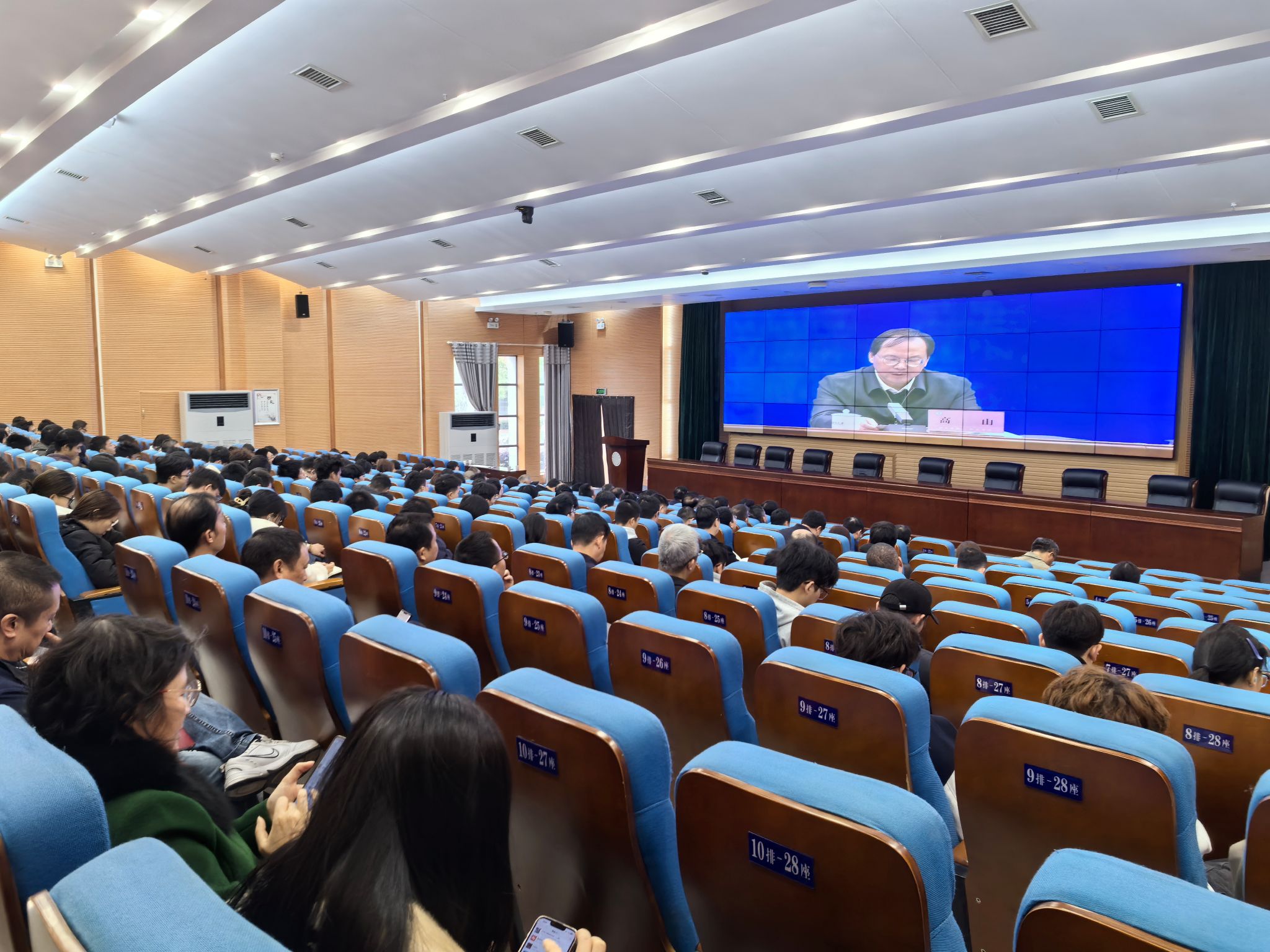 永利官网党委书记何振、副校长雷存喜赴现场参加会议,其他在家校领导与各机关职能处室负责人、二级学院党政主要负责人和分管负责人、双创专干以及其他师生代表300余人在学校图书馆报告厅通过线上形式参加会议。
