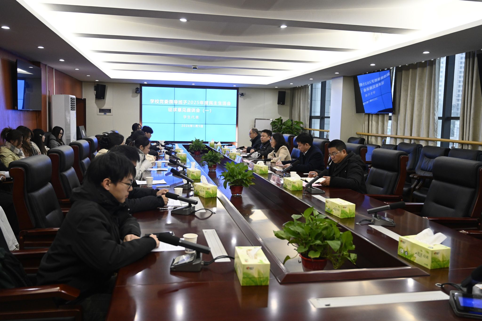 本网讯(通讯员 陈艳姣)为高质量开好永利官网党委领导班子2025年度民主生活会,1月5日至8日,永利官网召开4场民主生活会会前征求意见座谈会,分别向学生代表、教师代表、干部代表、离退休老同志和党外人士代表等广泛征求意见建议。全体在家校领导出席。