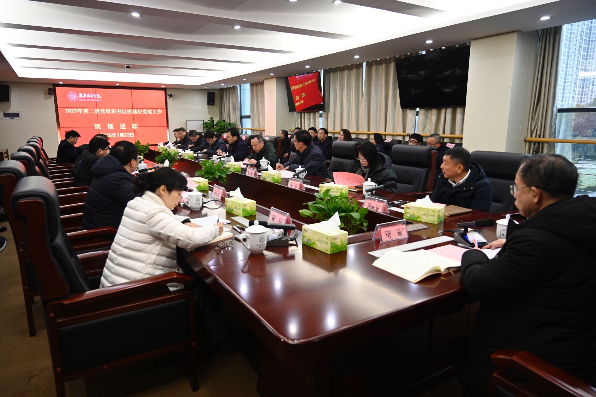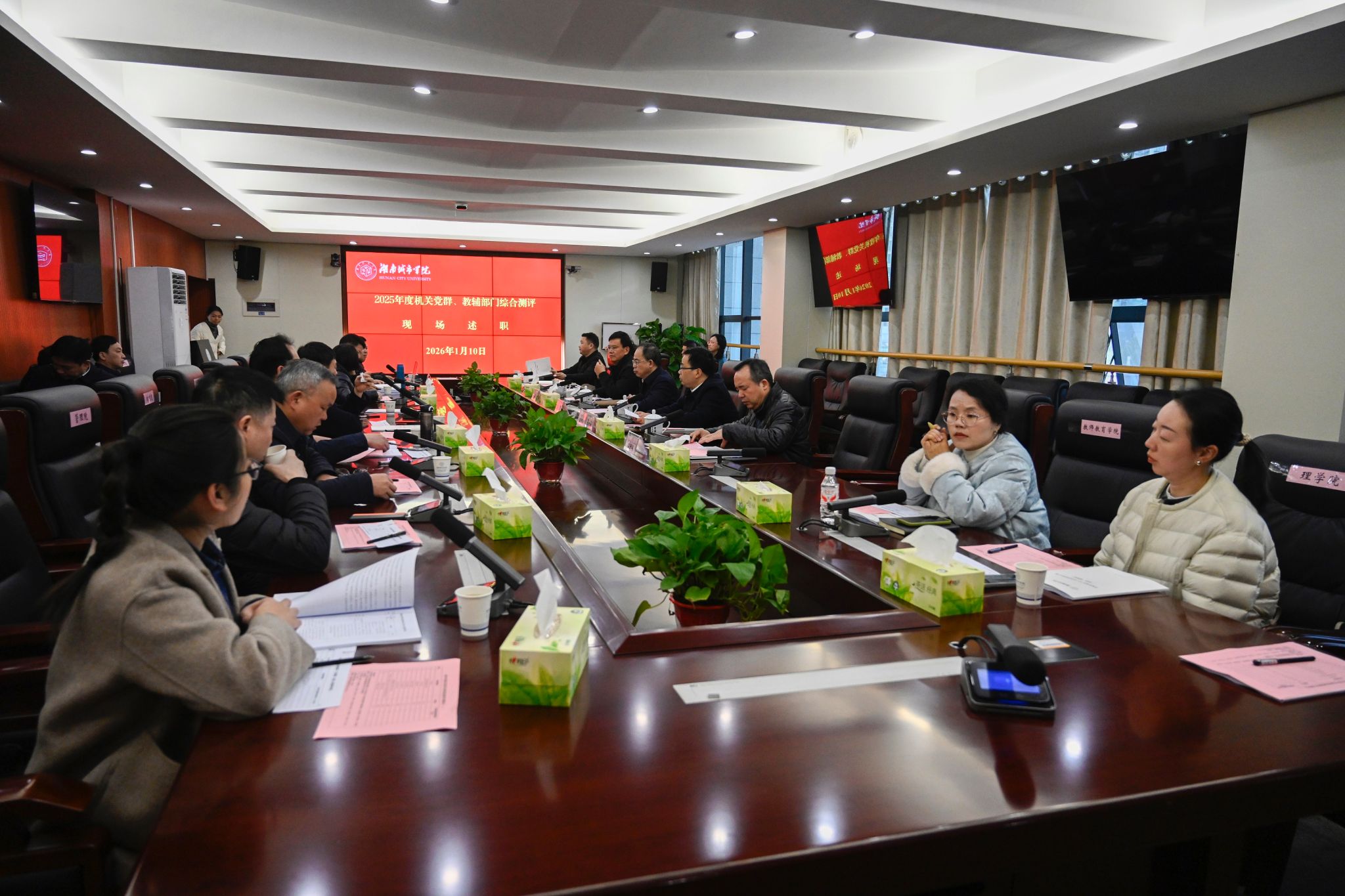 会上,中层正职干部(含主持工作的副职)围绕开展深入贯彻中央八项规定精神学习教育情况、履行党建工作责任情况、落实意识形态工作责任制情况、党风廉政建设情况与人才培养、教学科研、管理服务、师德师风建设等2025年开展的主要工作、存在的主要问题及2026年工作计划开展述职。述职汇报内容重点突出、亮点纷呈,展示了2025年度工作成效,明确了2026年度工作目标。