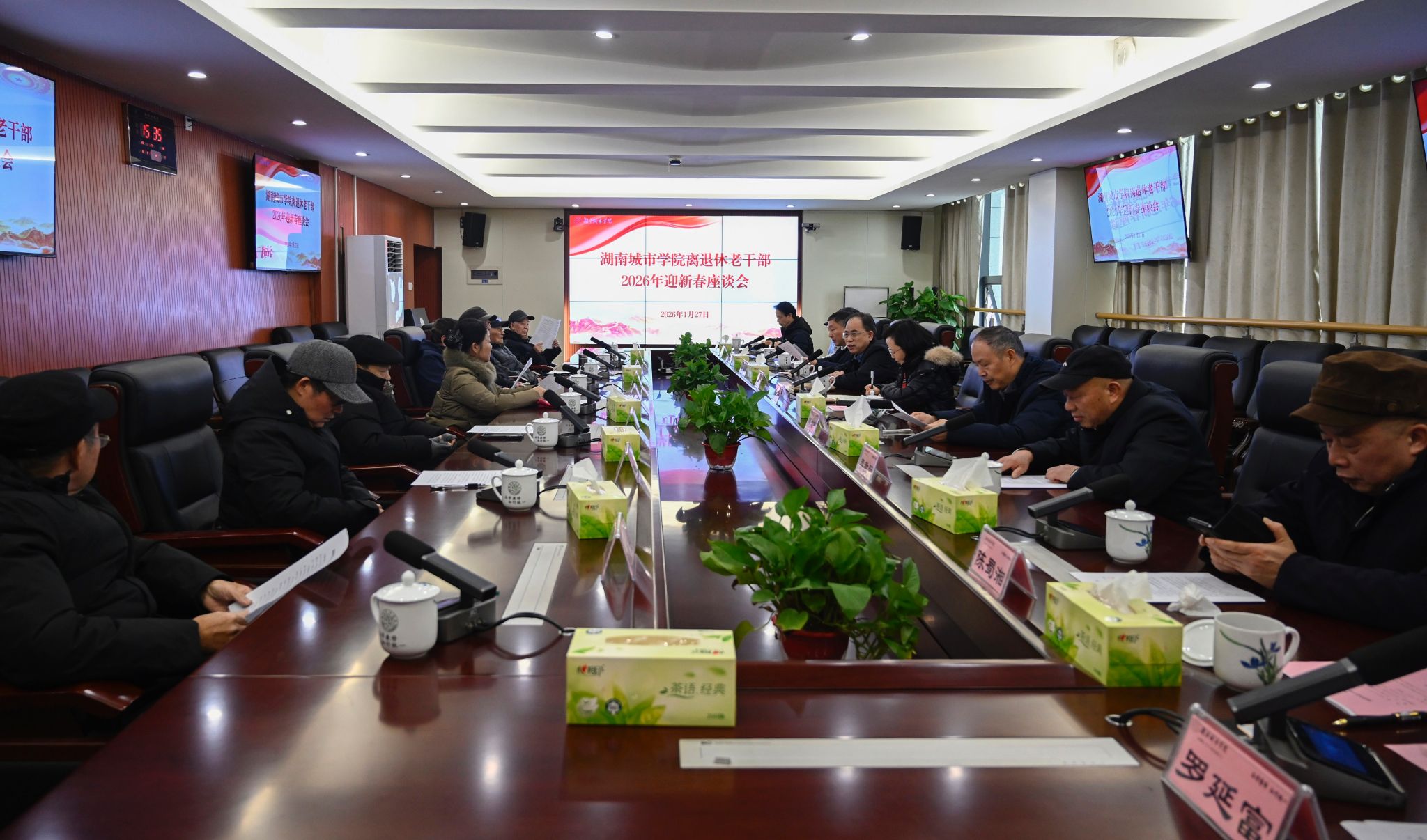 本网讯(通讯员 张艳霞 陈佩霞)1月27日下午,永利官网离退休老干部迎新春座谈会在办公楼一会议室召开。校党委书记何振、校长陈瑜、副校长谭献良与离退休老干部代表二十余人欢聚一堂,喜迎新春佳节,共话学校发展。会议由谭献良主持。