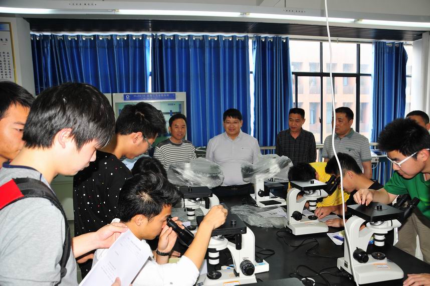 5月4日,罗成翼实地察看了15个二级学院的办公环境、教学场地、资料室、图书室、实训实验室,了解了各学院的基本工作情况。