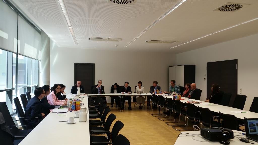 在德期间,代表团受到了威斯特法伦应用技术大学的热烈欢迎。该校校长Kriegesmann、副校长Hansen、Weichler、Brodmann,以及国际交流处、机械制造学院负责人出席了座谈会。