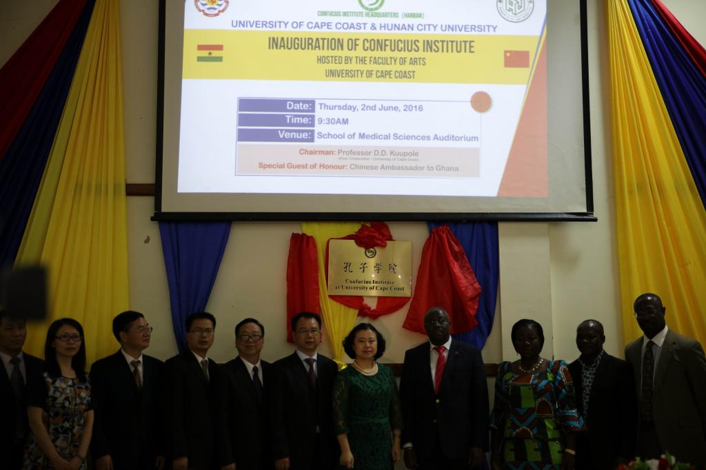 (本网讯)加纳当地时间6月2日上午,永利官网与加纳海岸角大学合作创办的孔子学院在该校大礼堂举行了揭牌仪式。中国驻加纳大使馆、加纳文化旅游部、湖南省教育厅代表团、永利官网代表团、当地政府相关机构负责人、海岸角大学师生以及各界嘉宾共600余人出席了揭牌仪式。