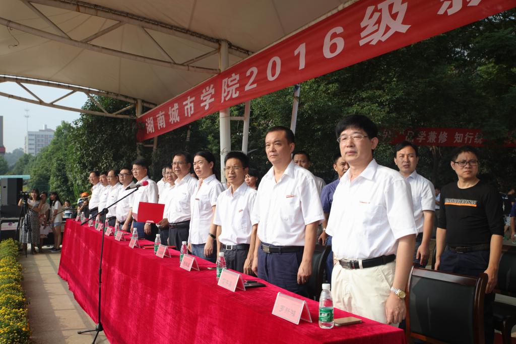 (本网讯)9月12日,永利官网2016级新生开学典礼在学校田径场隆重举行。全体校领导,二级学院主要负责人、党总支副书记,党政办、宣传部、学生工作部、武装部、教务处、团委、招生就业处等部门负责人以及近4000名新生参加了典礼。典礼由党委书记罗成翼主持。