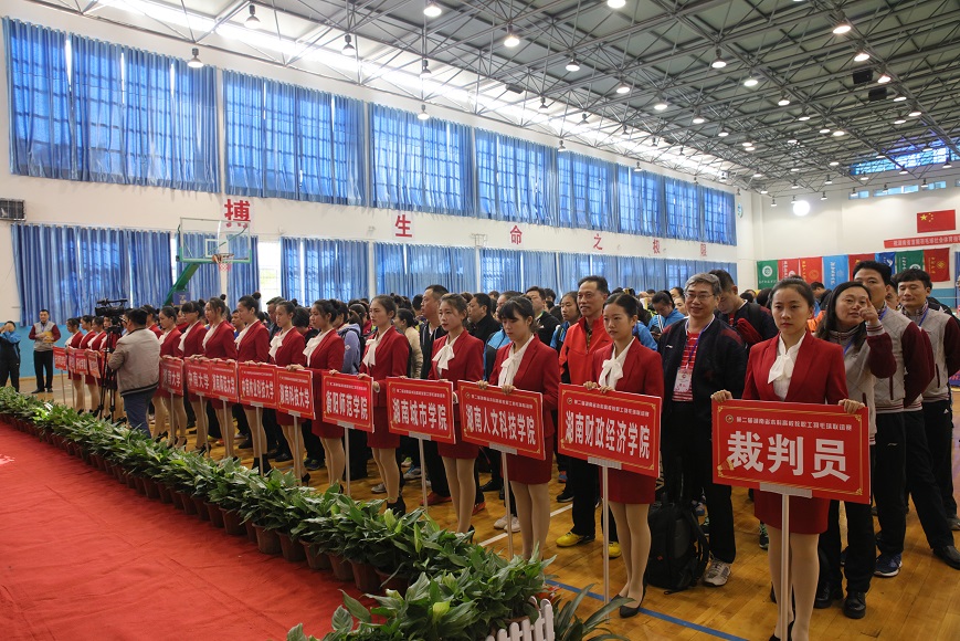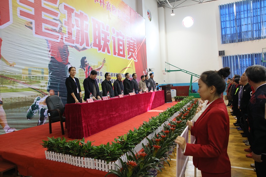 开幕式由省本科高校教职工羽毛球协会会长何学飞主持,永利官网校长李建奇、省教育工会副主席王常华分别致辞,裁判员代表、运动员代表上台宣誓,省教育工会主席高新明宣布比赛开始。