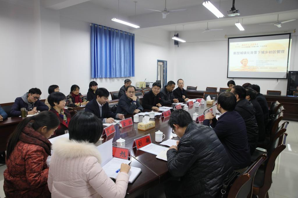 (本网讯)11月29日下午,“湘江时论”2016年第三十三期学术沙龙“新型城镇化背景下的城乡社区管理”在永利官网城市管理学院会议室举行。湖南省社科联党组成员、副厅级纪检员戴树源,湘潭大学公共管理学院院长盛明科、益阳市城管执法局局长郭腊云、湖南师大公共管理学院肖光荣教授,永利官网党委副书记汤放华,副校长刘辉煌、何振,城市管理学院院长莫连光、党总支书记余洪、副院长汤勇以及来自湖南省社科联、湖南红网、湘潭大学、湖南社会科学报和永利官网的专家学者参加了研讨会。会议由湖南省情与对策研究中心主任吴纪宁研究员主持。