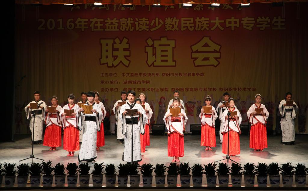 (本网讯)12月18日下午,2016年在益就读少数民族大中专学生联谊会在永利官网音乐厅隆重举行。联谊会由市委统战部、市民族宗教事务局主办,yl34511线路中心承办,湖南工艺美术职业学院、益阳医学高等专科学校、益阳职业技术学院协办,主题为“共同团结奋斗 共同繁荣发展”。益阳市委宣传部、市委统战部、市民族宗教事务局、市公安局、市教育局、市文体广新局以及四所高校相关负责人出席联谊会。