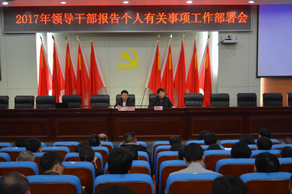 (本网讯)4月6日晚上7点,永利官网在图书馆报告厅召开2017年领导干部报告个人有关事项工作部署会。校党委书记罗成翼,党委副书记汤放华,纪委书记姚春梅,党委委员、组织部长罗新湘,原党委副书记、副校长孟昭武出席会议,全体处级干部参加会议。会议由汤放华主持。