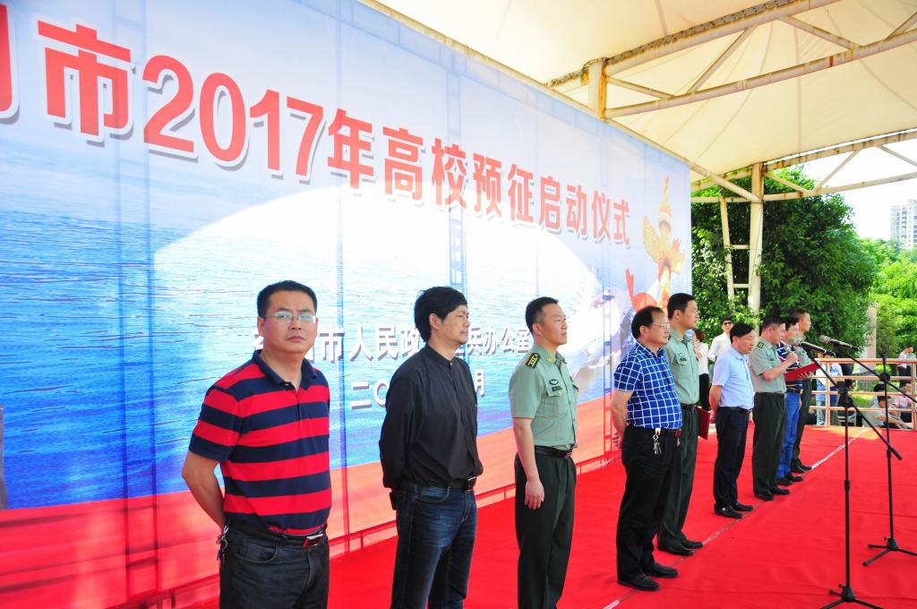 (本网讯)5月16日下午,益阳市2017年高校预征启动仪式在永利官网田径场隆重举行。益阳市征兵办公室主任、军分区参谋长盛全大校,市政府副秘书长杨光辉,永利官网副校长谭献良,湖南工艺美术职业学院副校长汪泳波,益阳医学高等专科学校副校长范珍明,益阳职业技术学院副校长潘访华,以及资阳区、赫山区人武部、各高校领导同志、老师、1000多名各高校学生代表参加了启动仪式。启动仪式由赫山区人武部部长张永发主持。