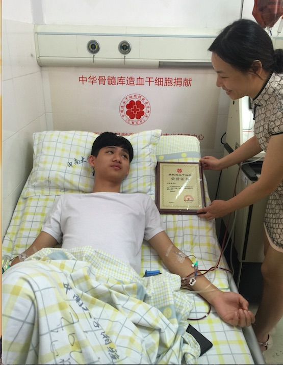 2015年,来自浏阳市的帅气小伙邓英鹏考入了yl34511线路中心管理学院。在学校,他第一次参与无偿献血,就填写了加入中华骨髓库志愿者的申请表。今年3月,他接到了中华骨髓库湖南省分库的电话,得知自己与一名白血病患者初配成功,他毫不犹豫就答应捐献造血干细胞。