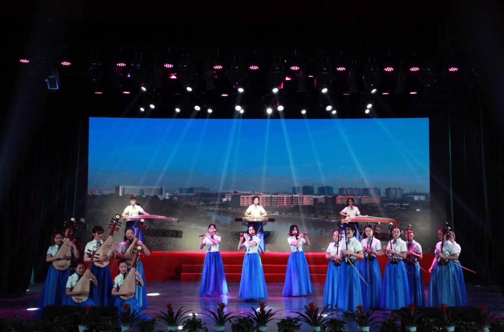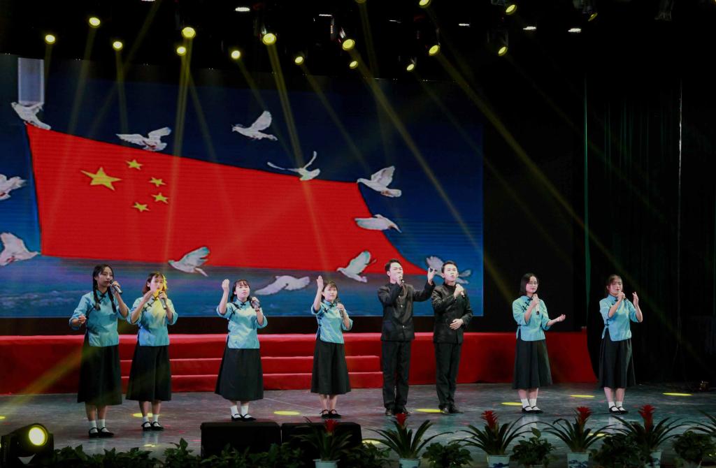 大红的舞台背景上,“不忘初心 继续前行”8个金色的大字熠熠生辉。台下灯光渐暗,喜庆而欢快的音乐声骤然响起,手持鲜艳大红绸的舞者尽情舞蹈,开场舞《东方红》拉开了晚会的序幕。红歌联唱《战斗青春 岁月芳华》,演绎了革命先烈不畏牺牲、浴血奋斗的战斗青春,诠释了中国共产党带领中国人民披荆斩棘走向光明与富强的光辉历程;张扬有力的军旅拳表演《荣光》彰显着永利官网军训学生教官的素质与风采;原创舞蹈《傩迹》,粗犷、豪放的男子群舞尽显湖南安化梅山傩文化的独特魅力;舞龙表演《大秦帝国之军魂》精彩的舞龙表演与舞蹈动作浑然天成、配合默契,赢得观众阵阵喝彩;戏曲联唱《梨园春曲》典雅精致的词句搭配悠扬委婉的唱腔,表现了中国人含蓄、稳健、精致、典雅的精神品格;阿卡贝拉演唱《彩云追月》轻柔婉转,沁人心脾;器乐表演《城院好风光》琴瑟和鸣、气势如虹,尽显yl34511线路中心内涵建设、特色发展、“六破六立”推进改革的蓬勃生机;“祖国”是我们心中最神圣的词语,在大学生青春、高昂的朗诵《祖国啊,我亲爱的祖国》声中,显得那么美好与深情;《武术》表演技艺高超,激起观众的欢呼与惊叹;合唱《不忘初心》慷慨激昂,气势磅礴,催人奋进。