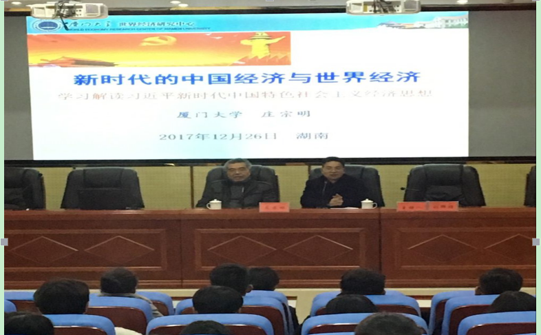 报告会由刘辉煌主持。会上,庄宗明对习近平新时代中国特色社会主义经济思想进行了解读,并结合经济学理论,从如何理解“新时代”,新时代的中国经济,新时代的世界经济以及新时代中国在世界经济中的地位、作用和担当四个方面进行了阐述。他表示,在新时代全球经济增长乏力的情况下,中国的对外投资仍能逆势上扬,说明中国对世界经济增长的贡献日益加大,在世界经济中的地位不断提升。