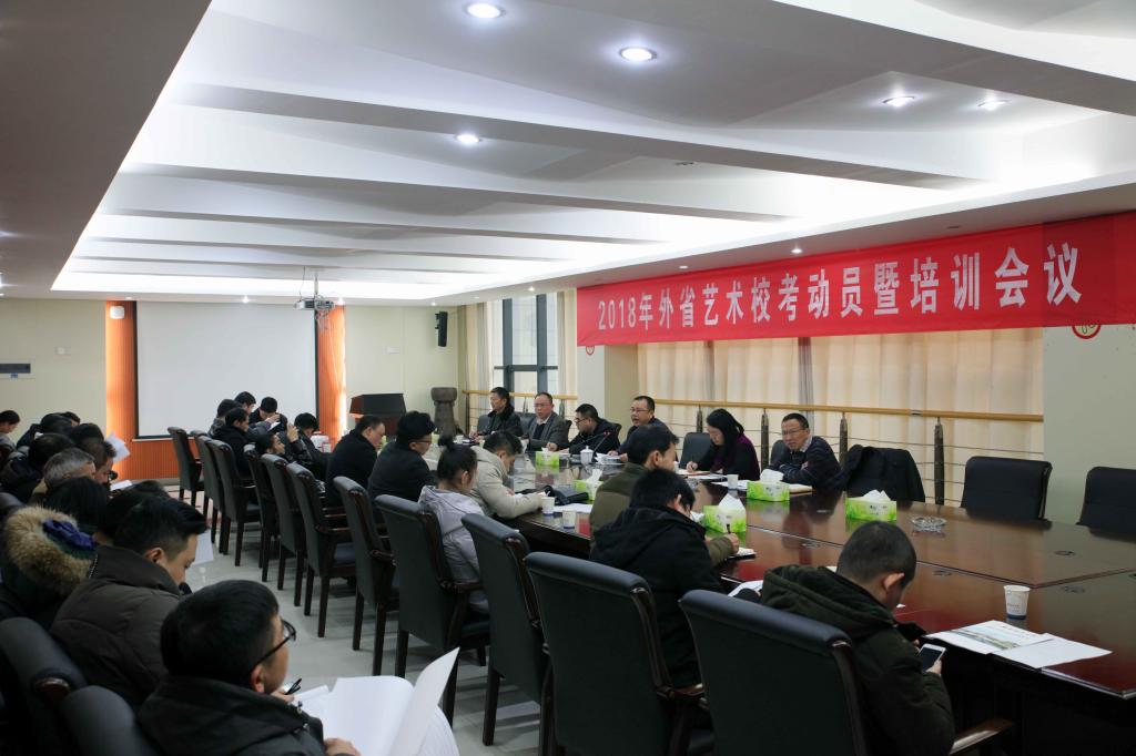 (本网讯)1月5日下午,学校2018年外省艺术校考动员暨工作人员培训会议在办公楼一会议室召开。校长李建奇、纪委书记姚春梅、副校长郑卫民,纪委监察处,计划财务处、艺术学院、招生就业处相关领导和招生工作全体人员参加了会议。会议由郑卫民主持。