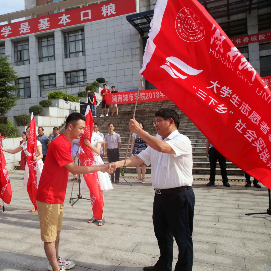 (本网讯)深入学习贯彻习近平新时代中国特色社会主义思想,引领教育广大城院青年学生勇做担当民族复兴大任的时代新人,切实在感受改革开放40年取得的新成就新面貌的生动实践中受教育、长才干、作贡献,7月5日上午8:00,永利官网2018年大学生志愿者暑期文化科技卫生“三下乡”社会实践活动出征仪式在兴城广场隆重举行。校党委书记罗成翼、党委副书记汤放华、副校长谭献良出席活动,学校德育工作小组成员、各学院团委书记、指导教师及学生志愿者代表参加活动。谭献良主持仪式。