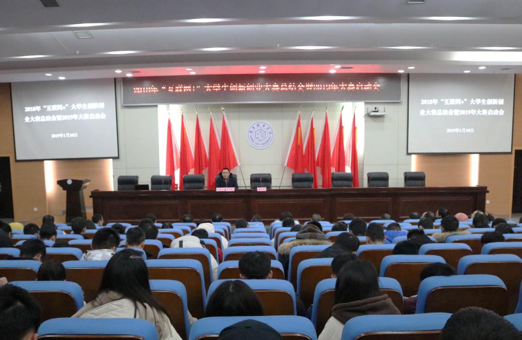 (本网讯)2019年1月10日晚,永利官网2018年“互联网+”大学生创新创业大赛总结会暨2019年大赛启动会在图书馆报告厅举行。副校长郑卫民,教务处、学工部、团委等部门负责人、各二级学院分管创新创业工作的领导和新聘创新创业导师、各学院学生代表、省赛获奖项目团队成员代表等200余人参加了会议。会议由应用与创新创业学院院长李梦醒主持。
