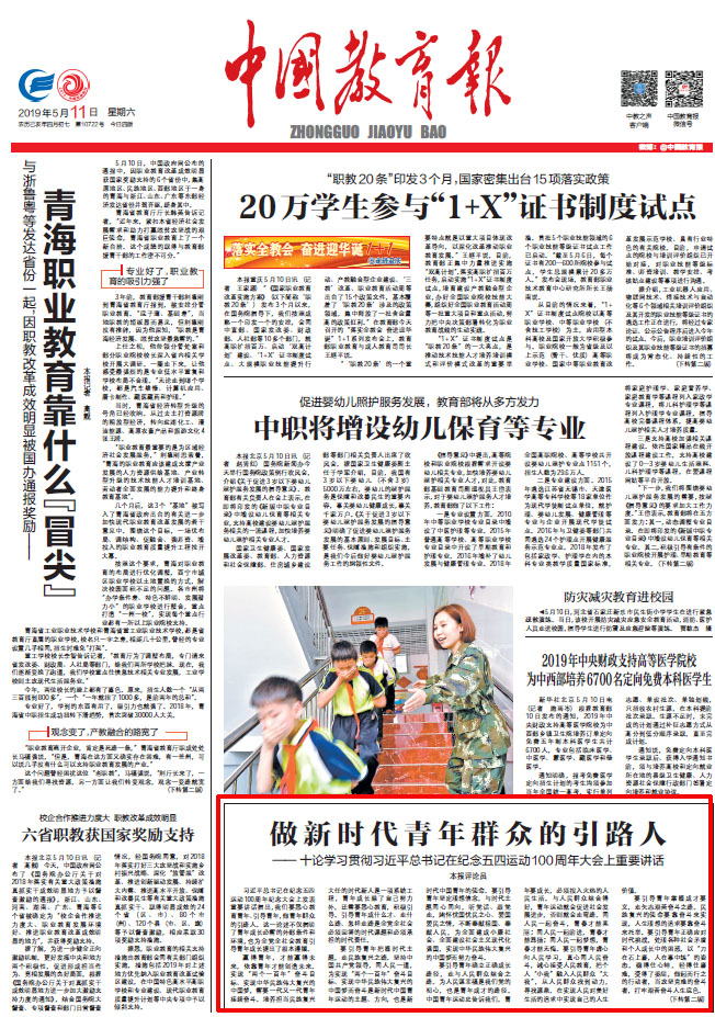 (本网讯)2019年5月11日,永利官网党委书记罗成翼受邀作为《中国教育报》评论员,就学习贯彻习近平总书记在纪念五四运动100周年大会上重要讲话,发表评论。全文如下: