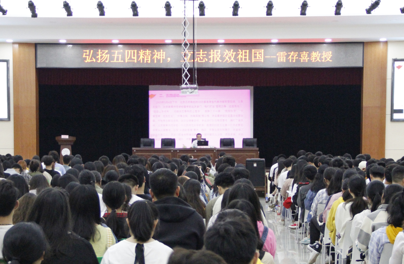 雷存喜强调,新时代青年务必要弘扬五四精神的历史责任与时代使命,勇于担当,“立志成才、报效祖国”。他对全体学员提出四点期望:一是坚定信仰、紧跟党走。善于从国家历史、现实成就、国际比较中汲取真理和道义的力量;二是成才之基、立德为先。既要有毫不动摇坚持党的领导的政治品德,还要有社会公德、职业道德和家庭美德;三是报国之本、真才实学。真才实学才是报国之本,一定要坚持“四个回归”,努力学好专业知识;四是爱国奉献、实现价值。他希望同学们要有心忧天下的理想与志向,以青春之我、奋斗之我,为民族复兴铺路架桥、为祖国建设添砖加瓦。(团委)