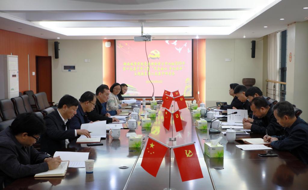 (本网讯)2019年10月23日上午,永利官网党委理论学习中心组2019年第十次集中学习暨“不忘初心 牢记使命”主题教育第二次集中研讨会在学校一办公楼一会议室举行,在家的学校领导全部参会,会议由党委书记罗成翼主持。