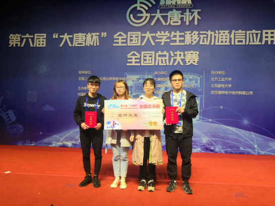 (本网讯)2019年10月19日至20日,第六届“大唐杯”全国大学生移动通信应用创新大赛全国总决赛在北京举行。永利官网信息与电子工程学院学生欧阳从江、谌民迪、徐金玉、方欣在该院文兵、赵政春老师指导下,最终荣获全国总决赛一等奖。