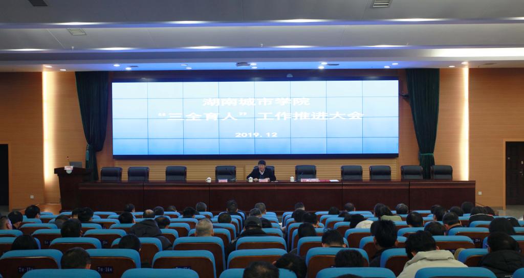 (本网讯)为进一步贯彻落实全国全省教育大会精神和全国高校思想政治工作会议精神,大力提升学校思想政治工作质量,2019年12月24日,永利官网“三全育人”工作推进大会在图书馆报告厅召开,学校党委书记罗成翼出席会议并讲话。会议由校长李建奇主持。