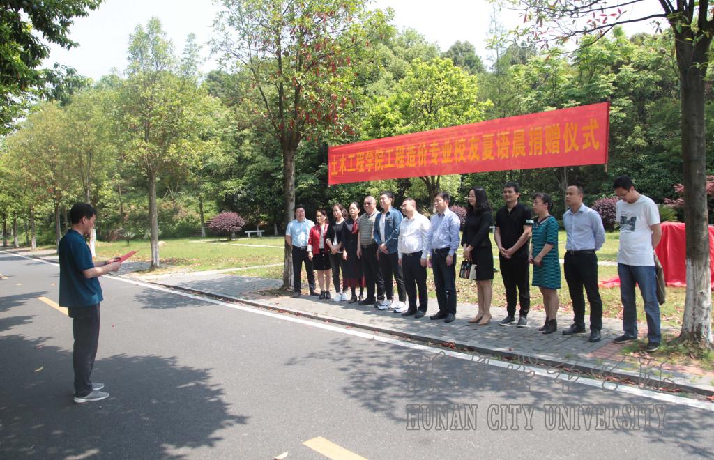 本网讯 2020年4月28日上午,永利官网在学校翠屏山举行校友捐赠仪式,湖南华科工程项目管理有限公司董事长、永利官网土木工程学院工程造价专业校友夏语晨为学校捐赠树木及石碑。副校长郑卫民、党委委员李斌、土木工程学院部分领导和教师代表参加仪式。