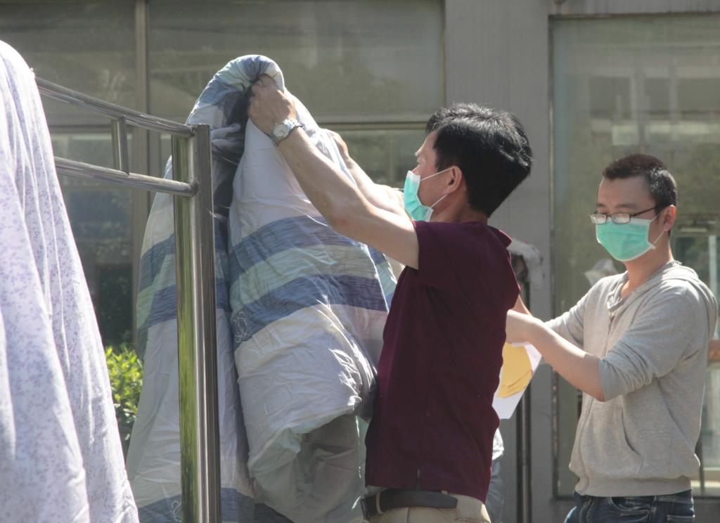 想学生之所想,急学生之所急,4月29日,yl34511线路中心最大的二级学院——土木工程学院,率先发起“迎返校晒温暖”活动。趁着艳阳高照的大好天气,该院学工办、团委组织发动全体院领导、辅导员、毕业班班主任和部分在校教师党员40余人,分组深入学生公寓,为219间毕业生寝室开窗通风、晒被子。针对33间一楼寝室,环境潮湿,被子更容易滋生细菌,他们将所有盖被、垫被、枕套等床上用品全部搬到室外晾晒。为了防止被子出现“张冠李戴”的情况,细心的老师们专门对床铺和被子进行了编号。