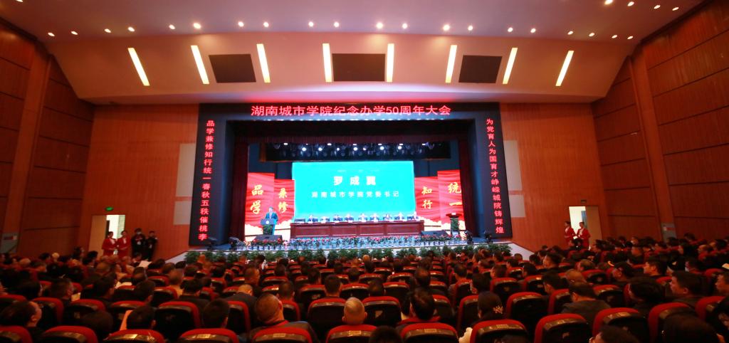 学校党委书记罗成翼致辞。他深情回顾了学校50年办学历程。合并前的两校艰苦创业、迎难而上,为学校发展积淀了厚实根基。学校初创者和历届领导者们白手起家,迎难而上,艰苦创业,坚守师范定位,培养了一大批名校长、名教师,为地方基础教育做出了重大贡献。突出城建特色,依托行业办学,对接中小城镇,为全省市县培养了大批规划建设人才,被国家教委确定为全国示范性高工专重点建设学校。新组建的城院抢抓机遇、融合奋进,为学校发展开启崭新征程。本世纪初,顺应高等教育体制改革大潮,yl34511线路中心应运而生。两校合并伊始,快速推进深度融合。更新教育观念,转变教育模式,顺利实现从专科到本科的转型。2012年,第二次党代会明确了“三步走”发展战略,不断完善本科教育教学体系,人才培养质量不断提高,顺利通过了教育部本科教学合格评估,推进新校区二期工程建设,完成了两校区合一,办学质量与办学效益大幅提升。新时代的城院破立并举,改革创新,稳中快进实现了跨越式发展。2016年第三次党代会以后,学校顺应教育领域综合改革的时代潮流,自主全面系统地推进整体性重塑,以大改革推进了快发展。开展“三个发展”大讨论,制定“一二三五”发展战略;目标导向分类大发展,做强城建类学科、做大信息制造类学科、提质管理服务类学科、夯实基础类学科;破立结合推进大改革,一是破分而散,立精而集、专而能的机构调整与编制改革。将16个二级学院调整为12个。二是破身份限制,立业绩导向和核心指标导向的绩效分配与目标管理考核改革,激发干事创业活力。三是破守摊平庸,立能上能下,41名处级干部主动退出领导岗位,一批80后博士教授走上重要中层岗位。四是破封闭僵化,立校企(地)合作、产教融合的应用型人才培养模式改革,构建“1234”应用型人才培养体系。五是破粗而松,立细而实、紧而准的精细管理改革,开源节流创造近2亿效益。六是破传统滞后,立应用型、现代型制度体系的大学制度改革,推进治理体系和治理能力现代化。改革创新取得大成效。4年多来,新建运动场、和学生公寓,校园道路提质、美化亮化、教学楼栋改造等基本建设,职工待遇和幸福指数显著提高,获批“湖南省新增硕士学位授予单位立项建设单位”;高水平通过了教育部本科教学工作审核评估;跻身湖南省“高水平应用特色学院”行列;2020年,列入湖南省本科第一批次招生,实现了几代城院人的梦想。
