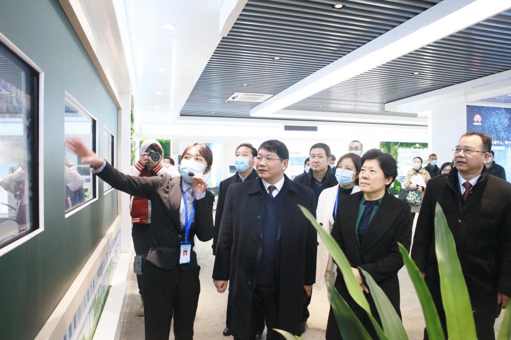 在湖南智慧城市研究院展厅,吴桂英一行仔细听取了学校与华为和益阳市共建的湖南新型智慧城市研究院发展情况的汇报。重点参观了智慧住建、智慧教育、智慧医疗等展岛内系统功能的展示,并了解各大智慧项目上线后取得的效果。在智慧医疗展岛前,吴桂英亲切询问了智慧医疗的建设情况,强调益阳市医疗体系建设要以智慧医疗为抓手,注重医防结合,构建医防融合新模式。研究院未来可充分借助华为技术有限公司和城市学院等平台优势,全面深化产学研用合作,为智慧城市建设赋能。