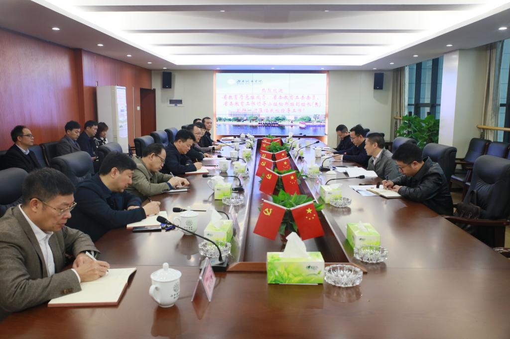 本网讯 2021年4月25日上午,省委教育工委党史学习教育第七巡回指导组莅临永利官网指导工作。学校党史学习教育工作汇报会在办公楼一会议室举行,巡回指导组组长、省教育厅党组成员、省委教育工委委员、省委教育工作领导小组秘书组副组长(兼)刘静一行到会指导。学校党委书记李建奇,党委副书记、校长汤放华出席会议,学校党史学习教育领导小组成员、办公室全体成员参加会议。会议由汤放华主持。