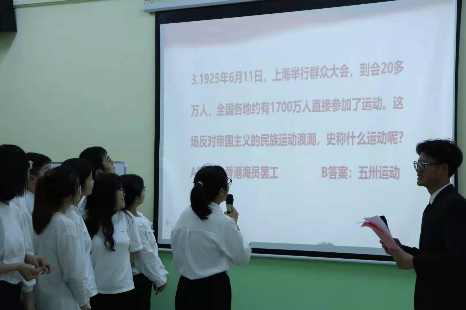 来自湖南的杨争澳、刘莎莎同学分别分享了关于自己家乡的党史故事。刘莎莎是邵阳人,她给大家讲述了流传在城步人民中的“一条棉裤”的故事,说到感人处,刘莎莎同学几度哽咽。长沙的杨争澳同学为大家介绍了长沙籍的伟人和优秀党员代表,讲述了发生在长沙的秋收起义和长沙会战。围绕党史学习教育,马克思主义学院此前为同学们开设了中国近现代史、毛泽东同志诗词欣赏等课程,讲到这些史实时,同学们自发地背诵了《西江月 秋收起义》《沁园春 长沙》等诗词。活动最有趣的环节是党史知识抢答,经过十轮激烈比拼,25位同学胜出,并获得了李建奇签名赠予的奖品----中共党史简明教程《学党史 知党情 跟党走》。