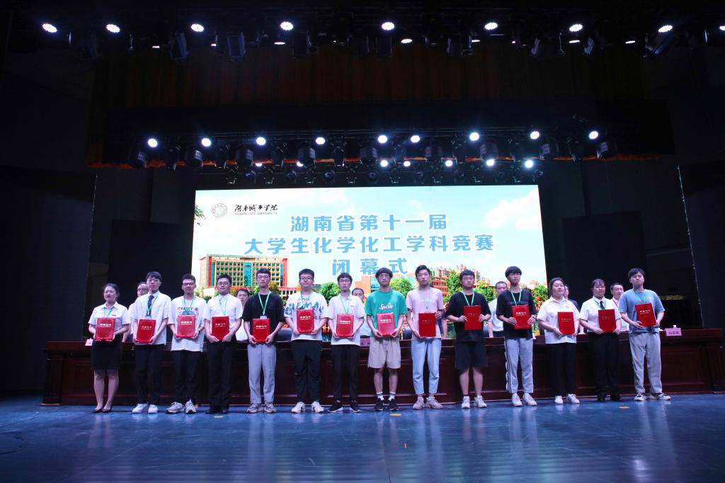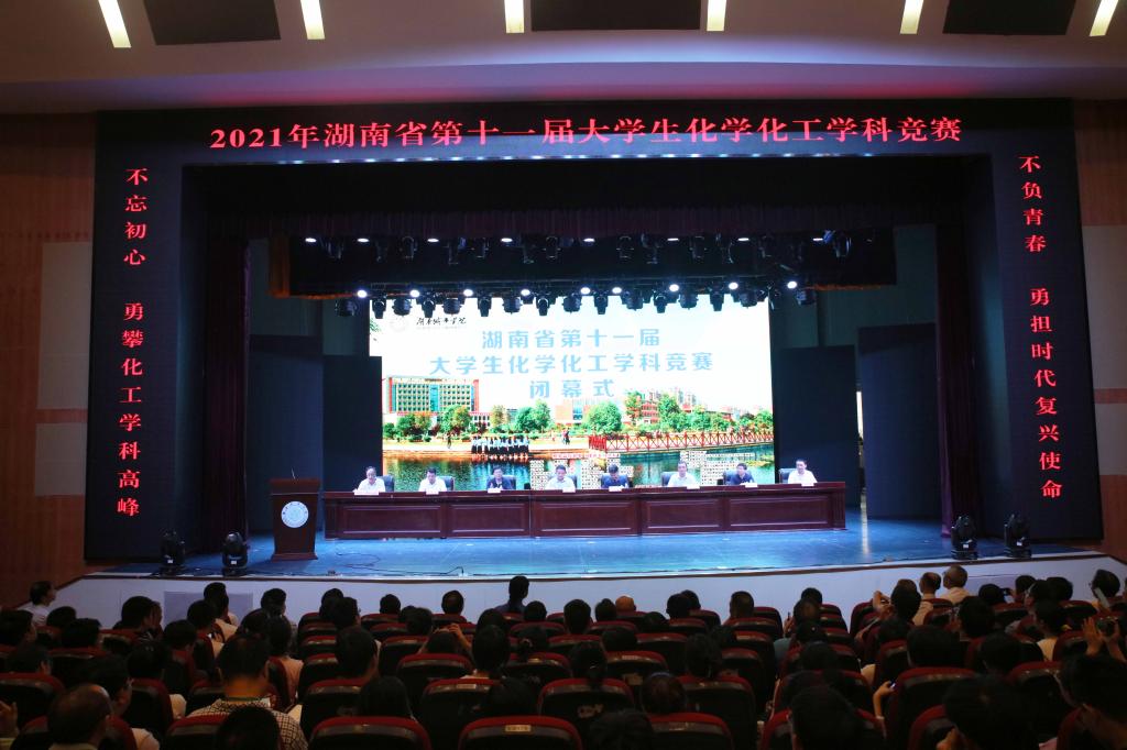 7月16日下午,比赛闭幕式在学校音乐厅举行。省教育厅高教处副处长王荣、永利官网校长汤放华、湖南工程学院校长易兵、永利官网副校长雷存喜、省化学化工学会理事长刘卫东、省大学生化学化工学科竞赛委员会主任郭栋才等人出席。