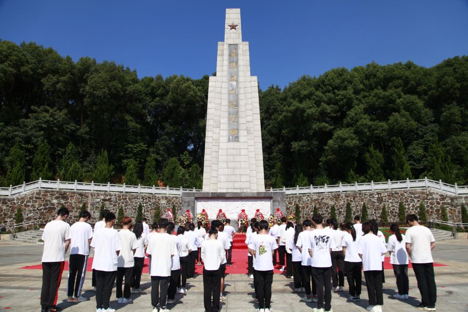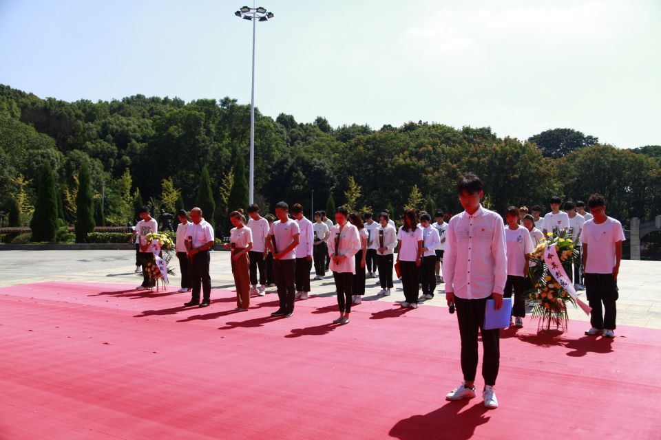 收看结束后,在学校团委教师带领下,40名青年团员来到益阳烈士纪念碑前敬献花篮,以青年之名,向烈士致敬。