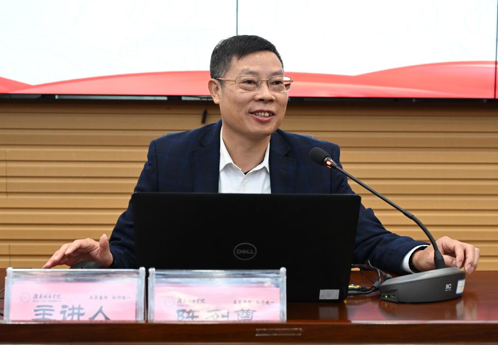刘湘溶以《人本理念与沟通能力——谈领导者的两种基本素养》为题,着重阐述了人本理念、沟通能力对领导者的重要性,认为以人为本的理念是一种价值取向:要理解人、要关心人、要尊重人,领导者要注重协调、联络和沟通。