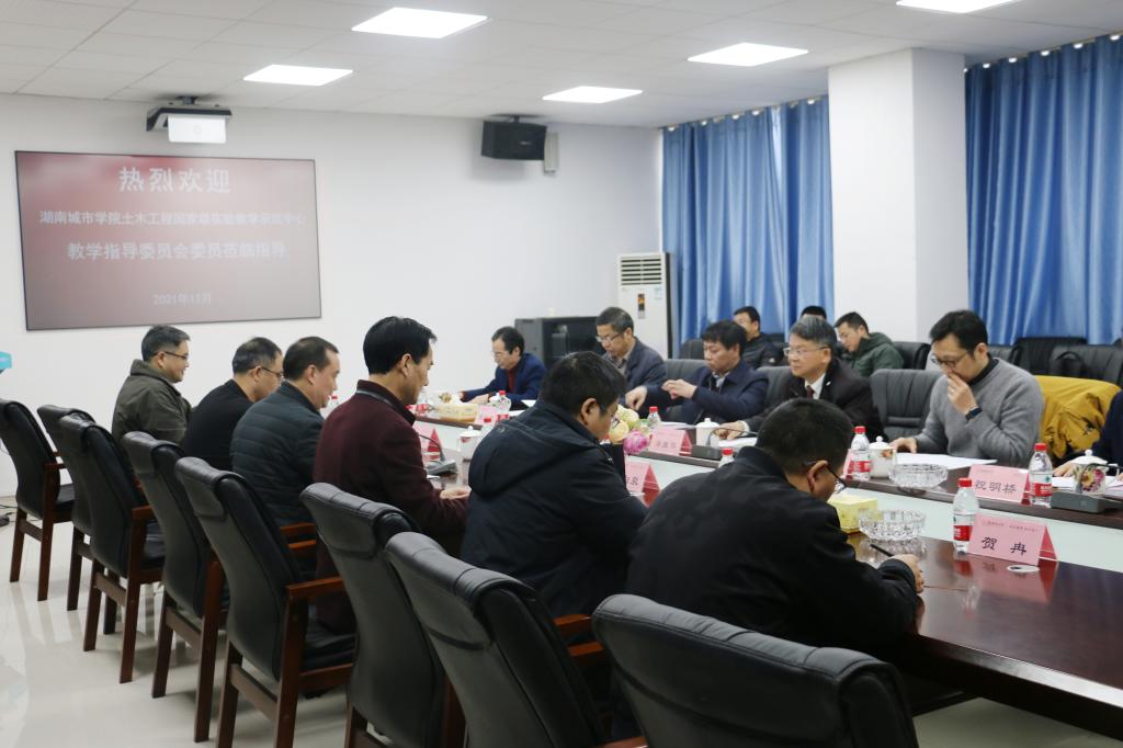 教学指导委员会主任委员、校长汤放华教授,副主任委员、中南大学王汉封教授,委员、湖南大学黄立葵教授、湖南科技大学祝明桥教授、中南林业科技大学陈伯望教授、长沙理工大学彭晖教授,副校长雷存喜以及教务处、土木工程学院、市政与测绘工程学院和中心主要负责人出席会议,中心全体实验人员参加会议。会议由雷存喜主持。