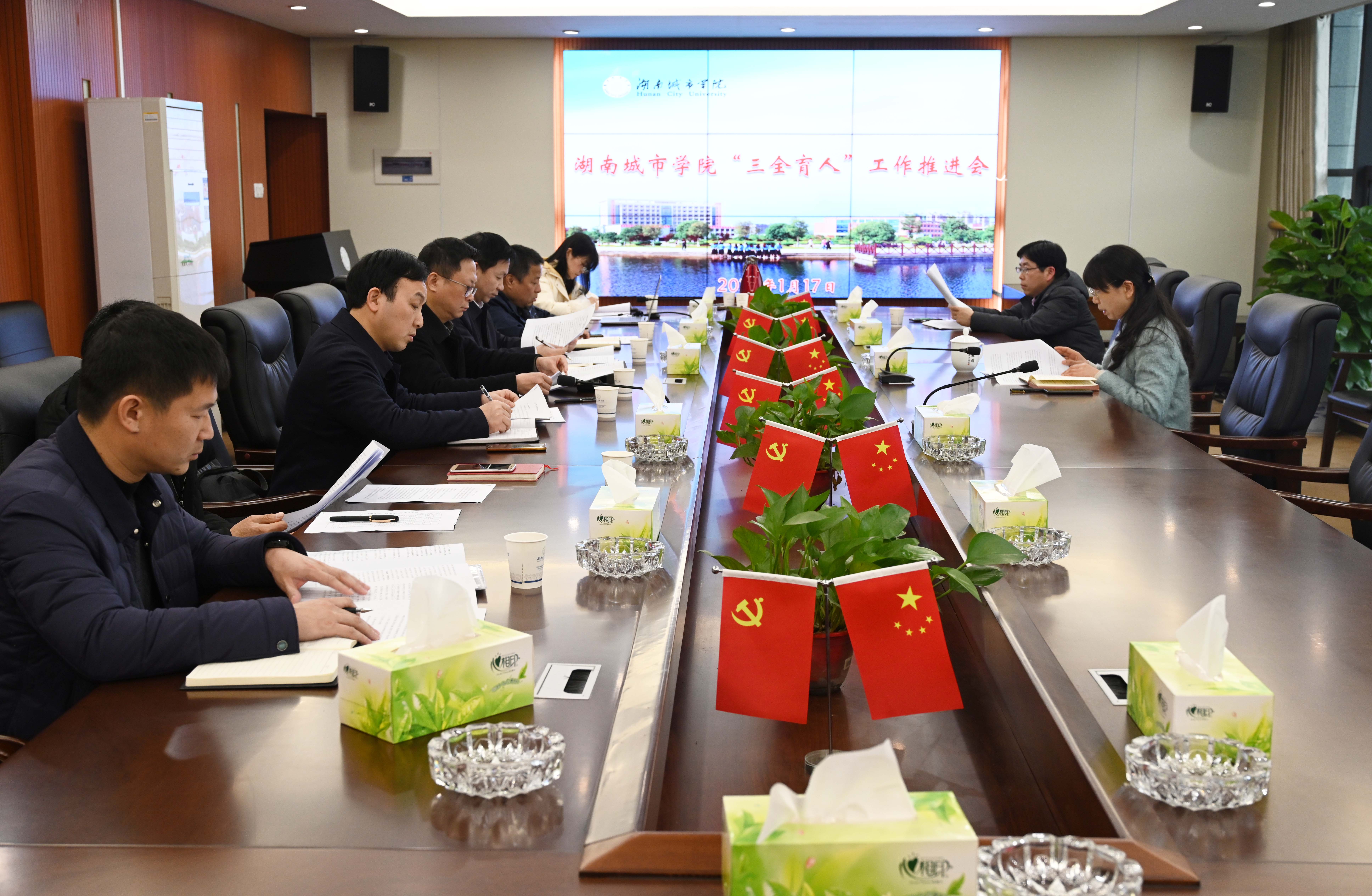 何旭娟强调,“三全育人”综合改革是加强改进新形势下高校思想政治工作、全面落实立德树人根本任务的重要举措。学校作为“三全育人”综合改革试点单位,要着力做好四个字:一要在“全”字上下功夫。“三全育人”,“全”是关键。要对照《教育部等八部门关于加快构建高校思想政治工作体系的意见》和《湖南省“三全育人”综合改革试点工作建设要求和管理办法》,聚合校内外各类育人资源,形成人人、时时、处处育人。二要在“创”字上深思考。结合省第十二次党代会精神,充分发挥“闯”“创”“干”精神,在现有工作的基础上大胆改革、勇于创新、敢于开拓,做出新成绩、总结新经验、开创新局面。三要在“联”字上出实招。充分发挥课程、科研、实践、文化、网络、心理、管理、服务、资助、组织等方面的育人功能,挖掘育人要素,完善育人机制,强化协同联动,形成全员全过程全方位育人格局。四要在“效”字上见实绩。要着力破解“三全育人”的痛点、难点、堵点,推动学校思想政治工作出经验、出典型、出成果,形成具有城院特色的育人品牌。