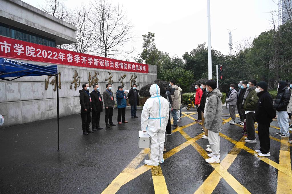 演练过程中,重点模拟了当学校南门发现黄码学生、在教室上课时出现发热症状学生、学生在寝室被告知为密切接触者、学生在医院就诊被疑为新冠肺炎病例四种情形下的报告、宿舍(教室)封锁与管控、校内转运、临时隔离、流调、次密接者排查、核酸采样检测、闭环转运、现场消杀、后勤保障等处置流程和应对措施。
