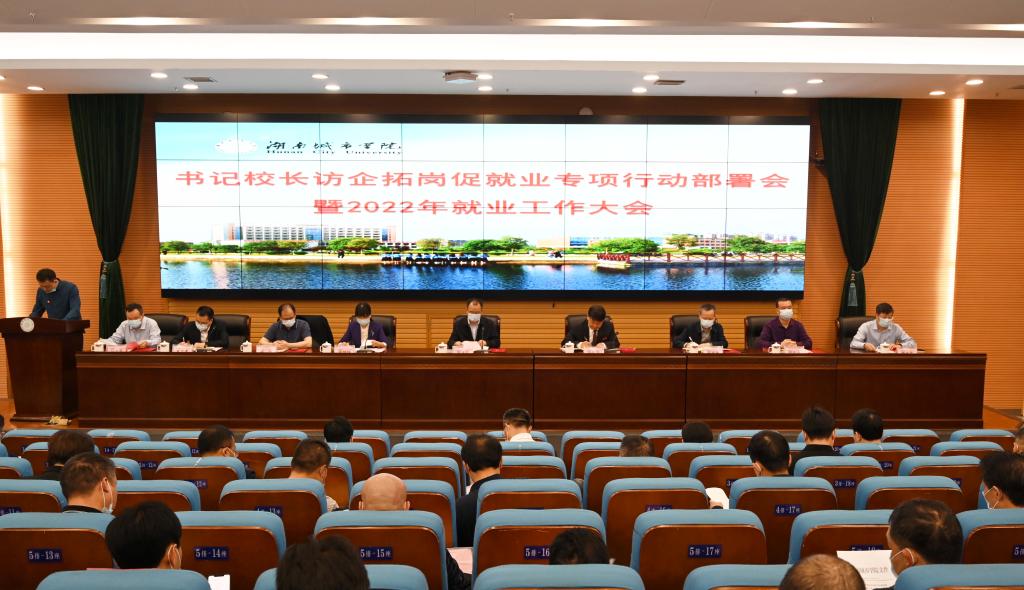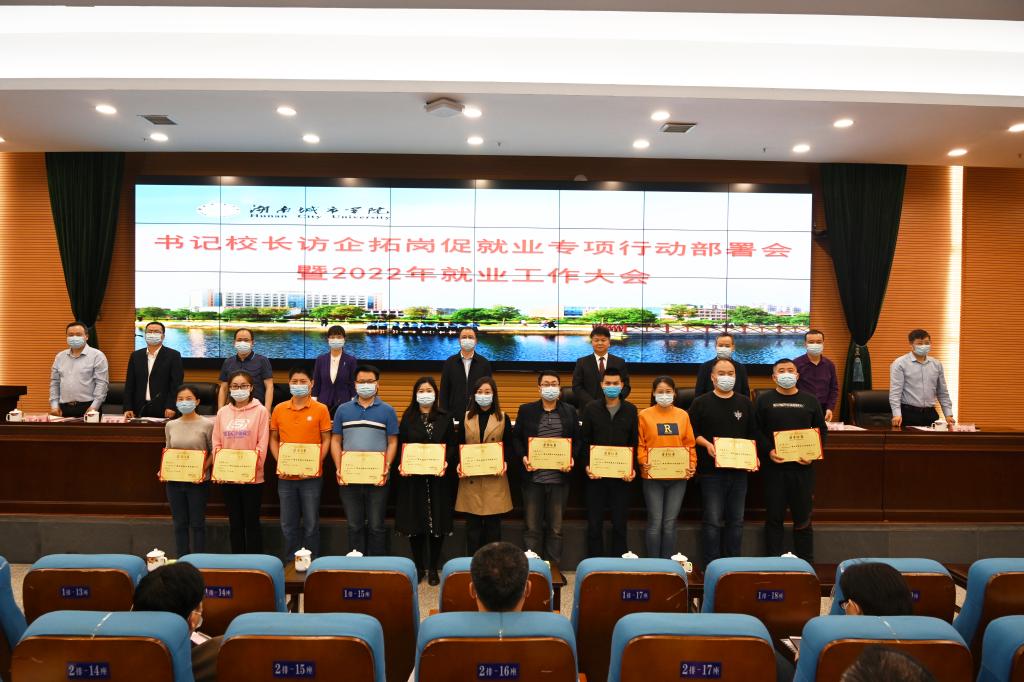 本网讯(供稿:招生就业处)为全面贯彻落实党中央、国务院关于高校毕业生就业工作决策部署,千方百计为毕业生开拓更多就业岗位和机会,深入落实就业工作“一把手”工程,2022年4月22日上午,永利官网在图书馆报告厅召开书记校长访企拓岗促就业专项行动部署会暨2022年就业工作大会,总结上年度就业工作,表彰先进集体和先进个人,研究部署书记校长访企拓岗专项行动。