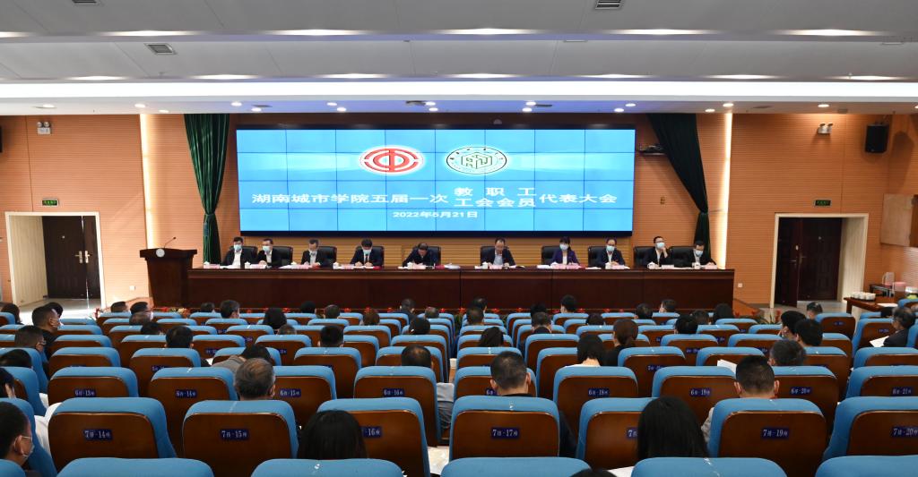 本网讯(通讯员 文彦波 周敏)2022年5月21日,永利官网第五届一次教职工暨工会会员代表大会在图书馆报告厅隆重召开。134名正式代表,11名特邀代表,7名列席代表出席会议。湖南省教育工会主席高新明应邀出席开幕式并讲话。校领导李建奇、汤放华、何旭娟、夏宏宇、何振、雷存喜、袁志成、陈列尊、吕贤军在主席台就座。大会先后由党委副书记、工会主席何旭娟和校长汤放华主持。