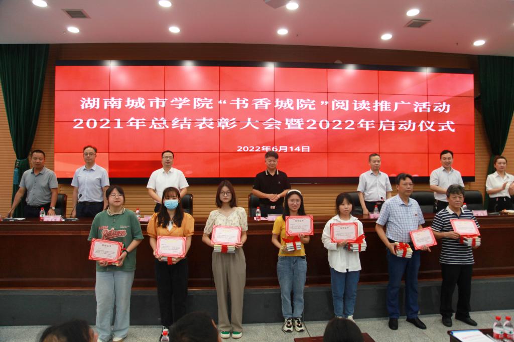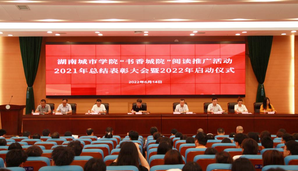 本网讯(通讯员 陈国民 梁钢)季夏之月,正是阳光灿烂时。2022年6月14日上午,永利官网在图书馆报告厅召开“书香城院”阅读推广活动2021年总结表彰大会暨2022年启动仪式。校长汤放华出席会议并讲话,副校长袁志成,党委宣传部、学生工作部、教务处、团委主要负责人,各二级学院分管学生工作的副书记、图书馆领导班子成员及相关人员、获奖集体及个人代表、学生代表、文献资源供应商代表等共300余人参加会议。启动仪式由副校长夏宏宇主持。