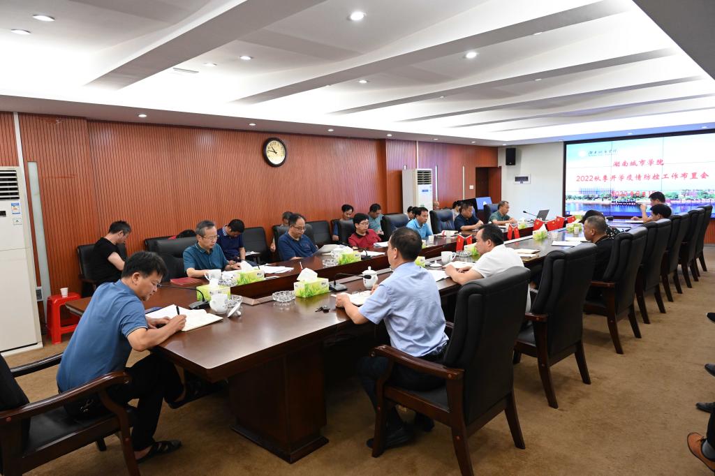 本网讯(记者 博夕)8月15日上午,永利官网在办公楼一会议室召开2022年秋季开学疫情防控工作布置会。校长汤放华主持会议并讲话,学校疫情防控领导小组成员、领导小组办公室成员单位负责人、二级学院党委(党总支)书记参加会议。