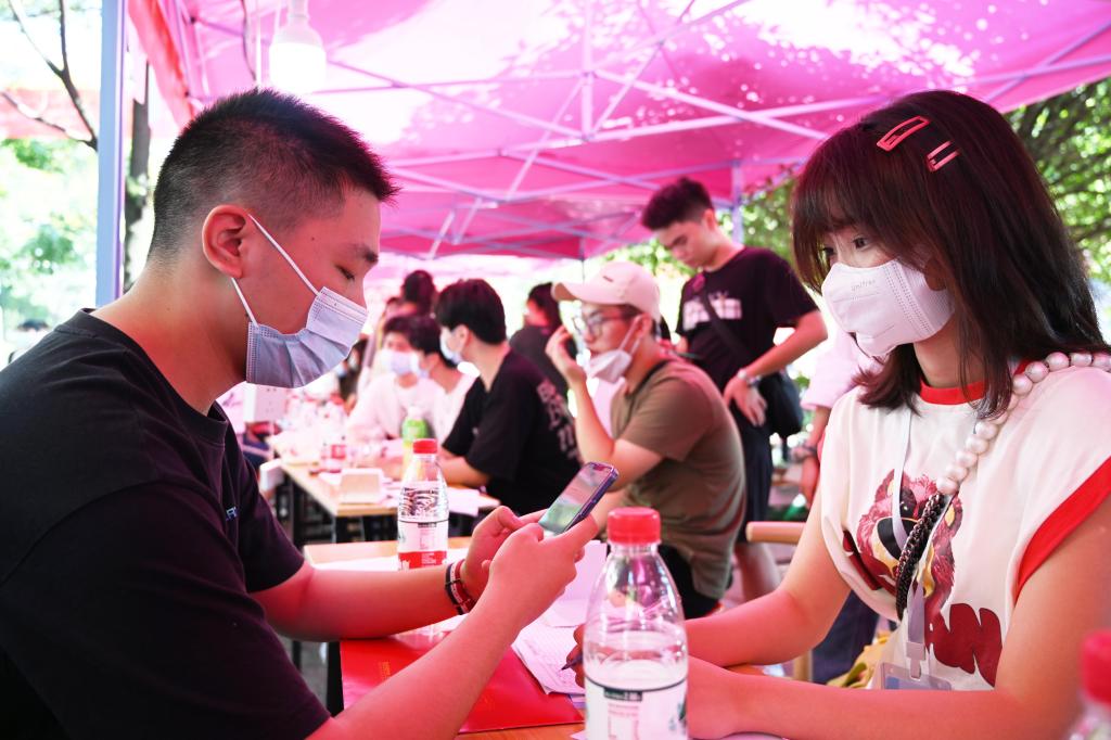 考虑到部分外省学生提前来校的情况,从9月3日下午开始,各二级学院及部分职能处室的工作人员便在迎新现场“严阵以待”,为早到的新生提供贴心周到的“一站式”服务。作为最早来校的20名新生之一,来自江西的大男孩郭定虎对此深有体会,“9月3日一大早我就兴奋地从家出发了,但临到学校却又有几分忐忑:迎新点不会没人办理报到手续吧?来到学校后,首先映入眼帘的便是学长学姐们热情的笑脸,他们争相帮我提行李,带我快速办完入学手续,让我体验到不一样的优待。”